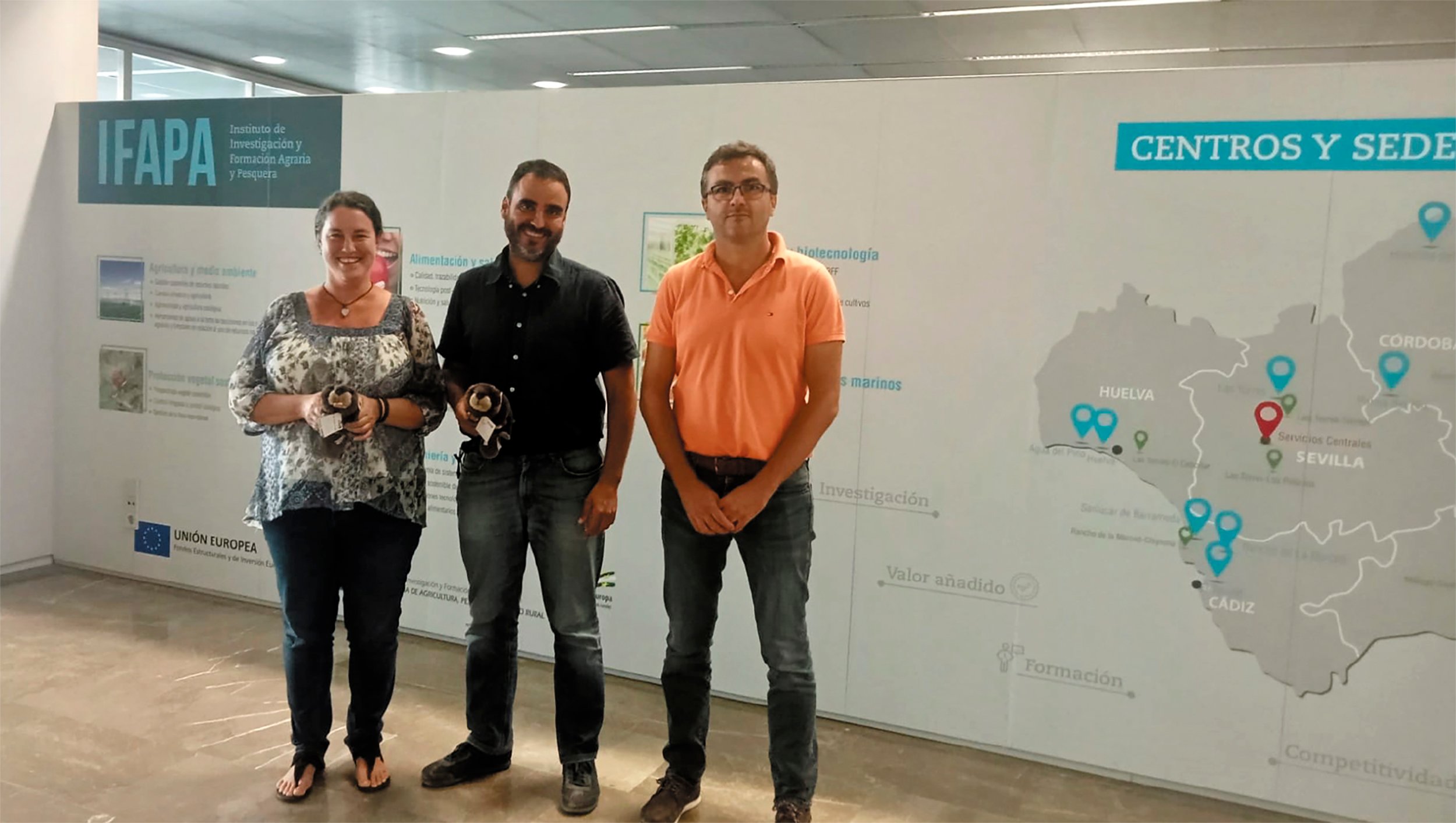 "Directivos de IFAPA con el castor de Kiwa"