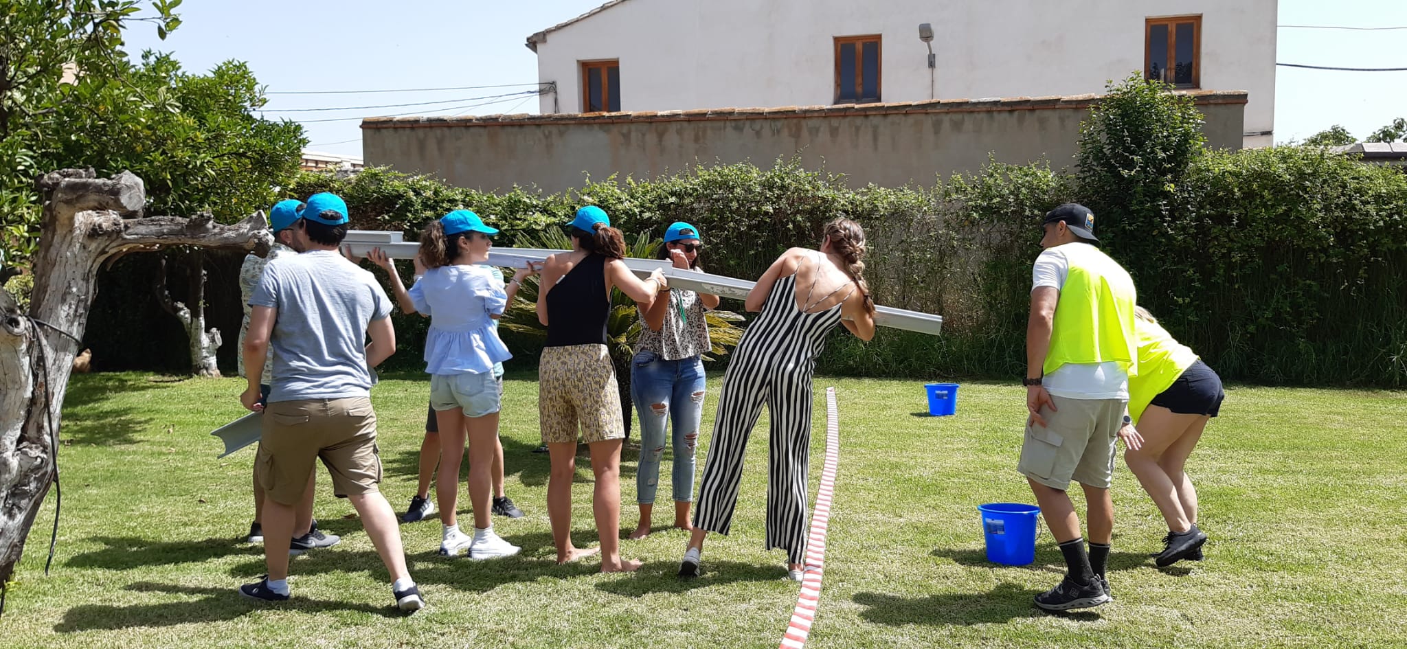 Al día siguiente, tras explicar el proyecto de Responsabilidad Social Corporativa en el que está comprometido Kiwa, se contactó online con la Fundación Banco de Alimentos de Sevilla, entidad con la que se coopera. Y llegó el momento en el que las mujeres y hombres de Kiwa repusieron fuerzas con el tradicional esmorzaret local y se dividieron en grupos para iniciar una auténtica maratón de pruebas y juegos en equipo.