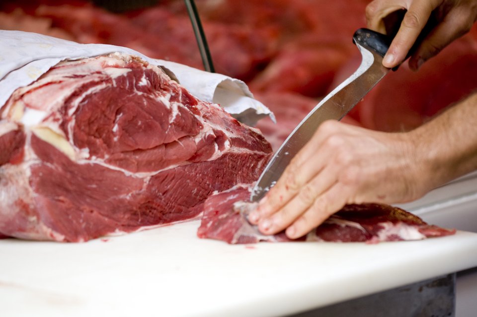 Slager snijdt vlees