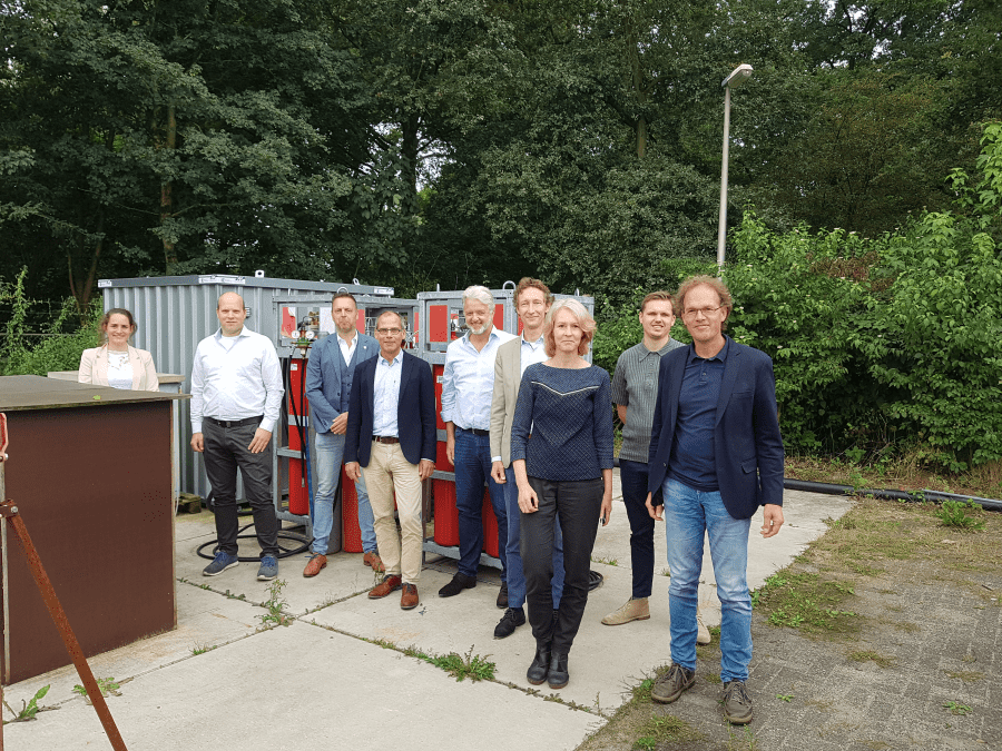 Foto: V.l.n.r. Suzanne van Greuningen (Kiwa), Nard Vermeltfoort (Kiwa), Menno van Luijn (Cleantech Regio), Raphaël van der Velde (Witteveen+Bos), Dieter de Vroomen (Cleantech Regio), Marcel van der Maal (Cleantech Regio), Annemarije Kooijman (Saxion), Laurens Frowijn (Witteveen+Bos), Richard van Leeuwen (Saxion).